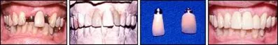 A 55 year old man lost two upper anterior teeth because of periodontal disease. Two single tooth-replacement implant crowns were made for him. Because they are not connected together he can floss between each tooth.