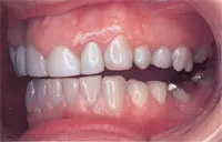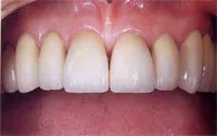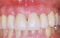 After: Note the dramatic color shift, the favorable soft tissue response, and the polychromatic color in the madibular anterior porcelain veneers.