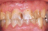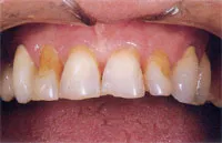 Before: An absence of hygiene has favored an accumulation of deposits and dental plaque and produced periodontal inflammation and decay.